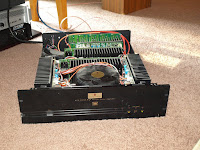I was actually lazy this weekend, normally with a new toy of this magnitude I would have stopped any and everything I was doing to go hook it up. It wasn't until Sunday night that I decided to hook it up. I yanked all the wires out the back of my trusty HK AVR254 and put it to the side. Lately I've been on a kick of trying to clean up wires. I'm tired of having to twist speaker wires and stick them in the terminals, and screw it down. I bought a ton of Nakamichi banana plugs and I screwed them on the ends to make setup easier.
